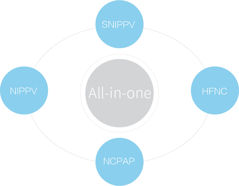 NV8 is the first non-invasive ventilator in China that can provide NIPPV and SNIPPV for newborns. Clinical studies have proven that NIPPV/SNIPPV mode can effectively reduce intubation rate and increase the success rate of invasive ventilation withdrawal. The comprehensive and leading non-invasive ventilation mode provides more choices for clinical care.